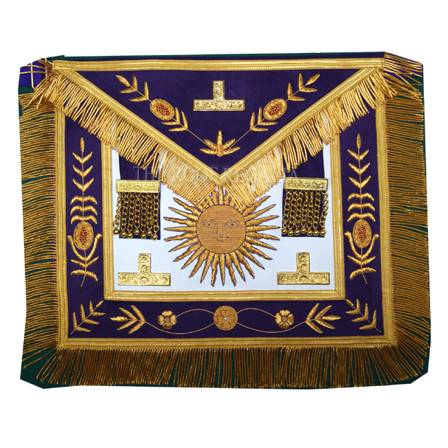 Grand Officer Apron machine made/handmade purple velvet/ribbon/fabric at the border Imitation leather size 14x16 inch Gold braid Gold fringe backing with pocket belt snake set enclosure