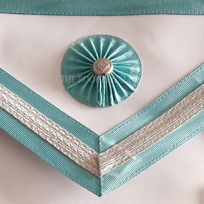 High quality Lambskin size 14x16 inch sky blue ribbon water effect moire silver braided, silver metal tassels, rosettes with silver S.C button